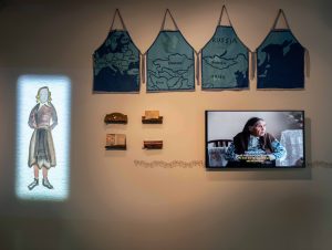 La etapa final de esta investigación fue un taller de costura celebrado en la Asociación de Cultura y Solidaridad de Kazán en Ankara (Turquía), con la participación de mujeres tártaras que habían emigrado de China. Al igual que en otros talleres dirigidos por la artista con mujeres de diferentes países, este proceso ofreció un espacio para que las historias personales tomaran forma dentro de una narrativa colectiva. Las reflexiones de las participantes sobre migración, pertenencia y memoria familiar se entretejieron en telas y se transformaron en una pancarta, acompañada de canciones tradicionales tártaras.
