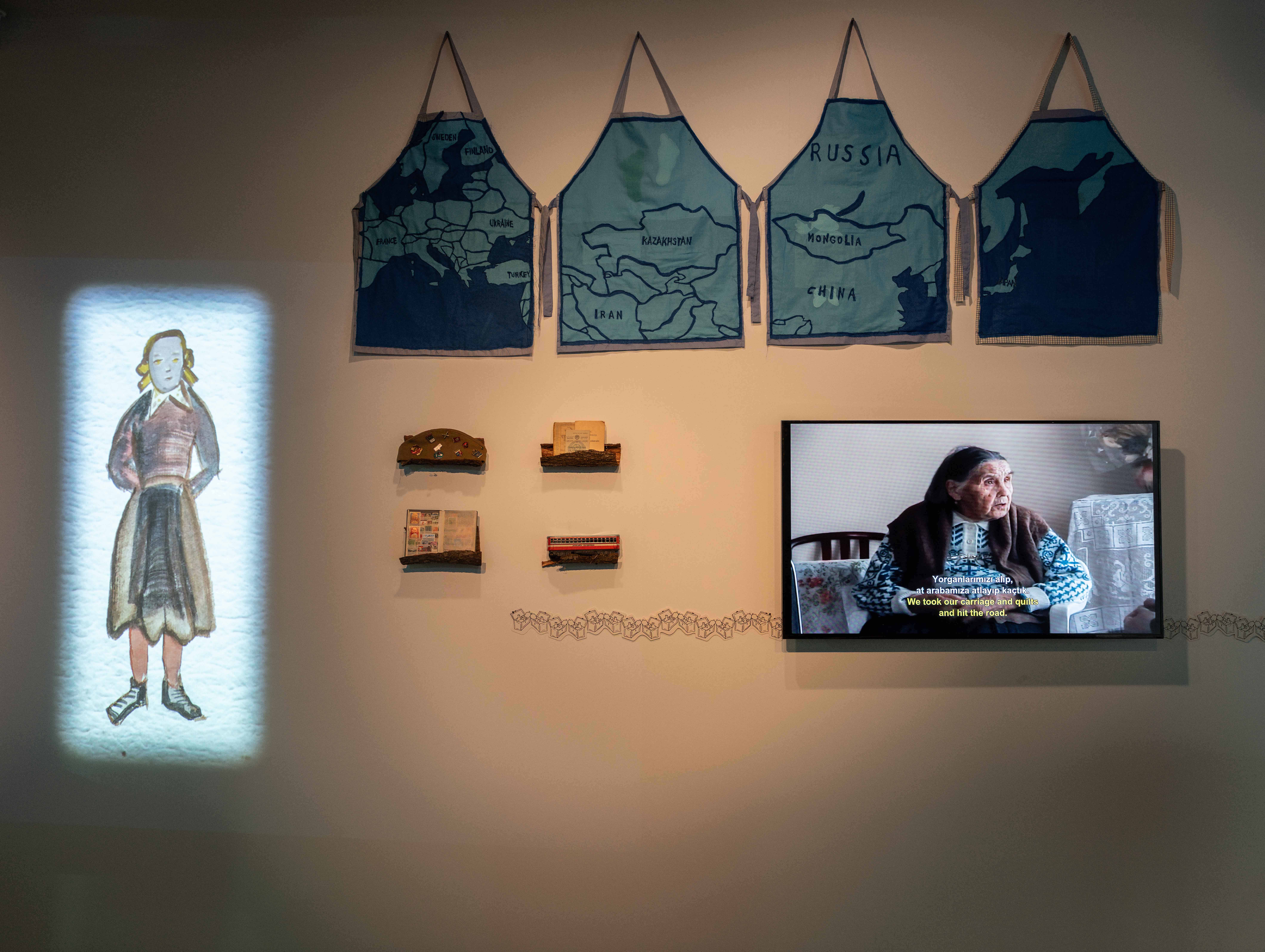 Durante los preparativos de la exposición este último año, se llevaron a cabo una serie de viajes de investigación, que incluyeron visitas al Foro de Mujeres Tártaras en Kazán (Rusia) y al Festival Sabantuy en Eskişehir (Turquía). Estos encuentros consistieron en escuchar numerosas historias de migración, realizar entrevistas en vídeo y sacar del baúl reliquias familiares y álbumes de fotos.